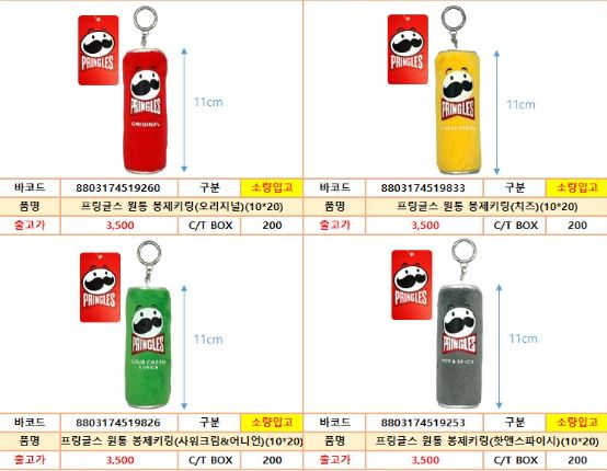 프링글스 원통 봉제키링 (4종)